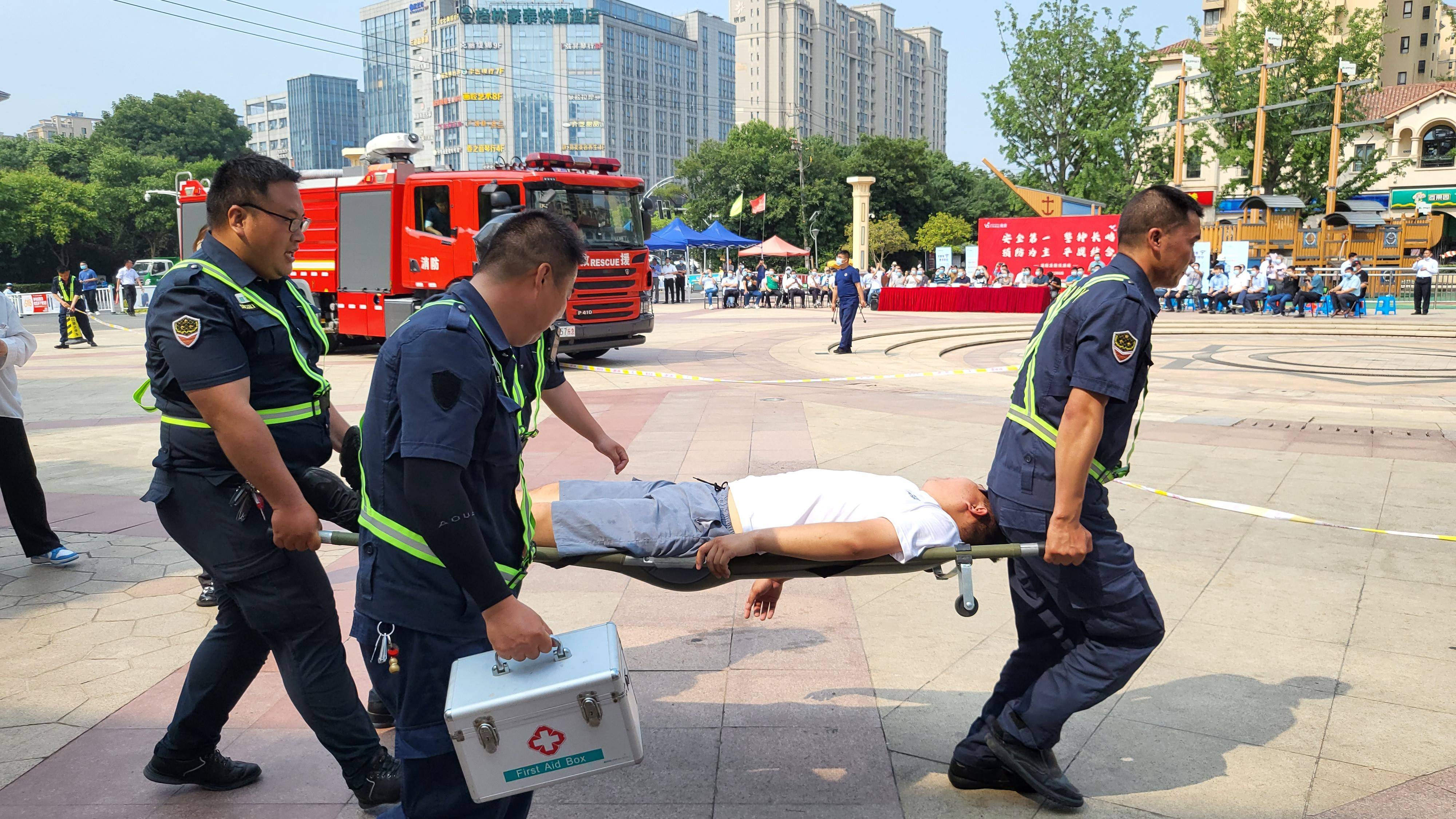 6月21日上午,区住房保障和房产局组织万科物业在金域蓝湾南广场开展居民小区消防及防汛应急演练,进一步提升物业服务企业防灾防患意识,有效提高物业人员面对灾险的应急处置能力,为平安小区建设打下坚实基础。